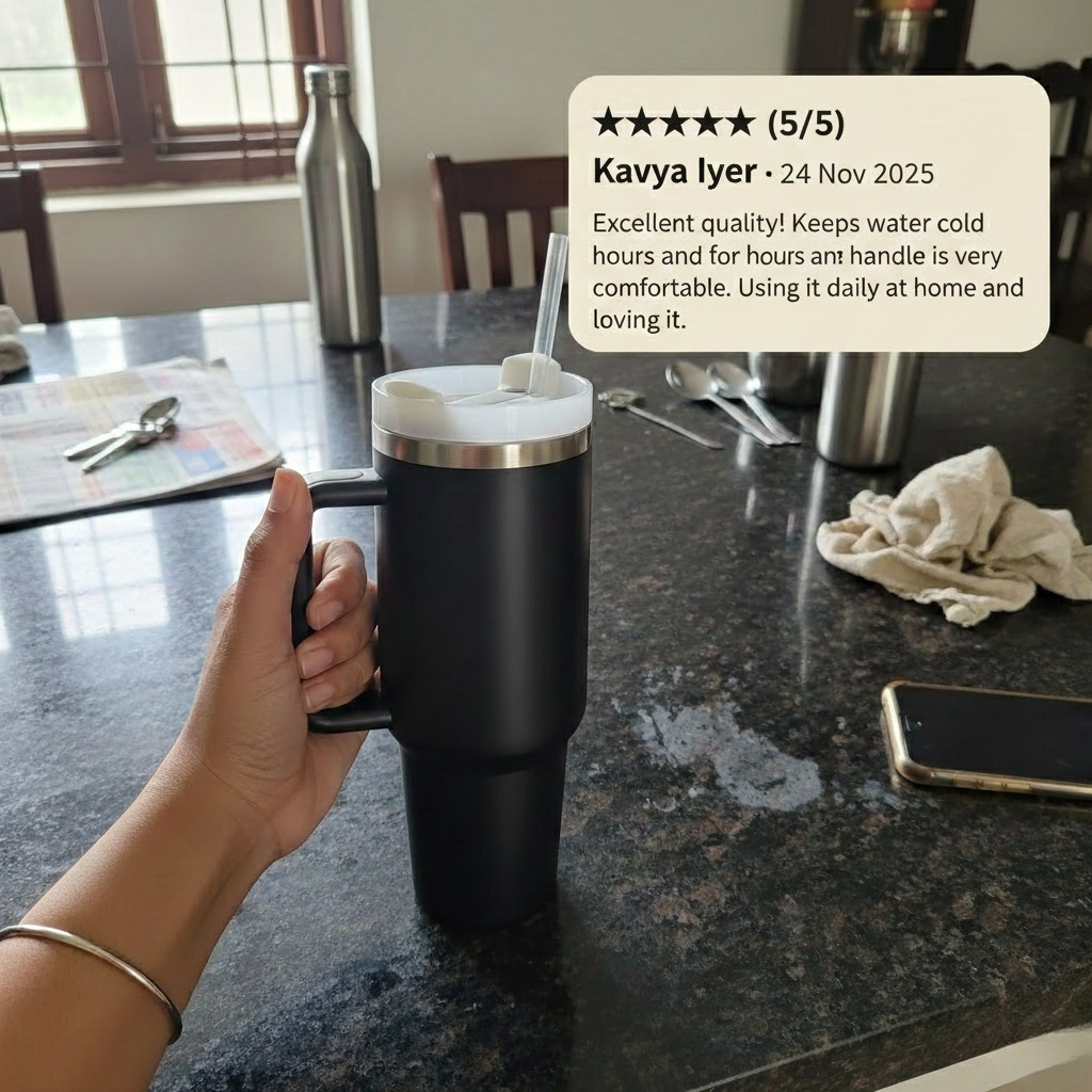 1200ml Stainless Steel Tumbler with Handle & Steel Straw